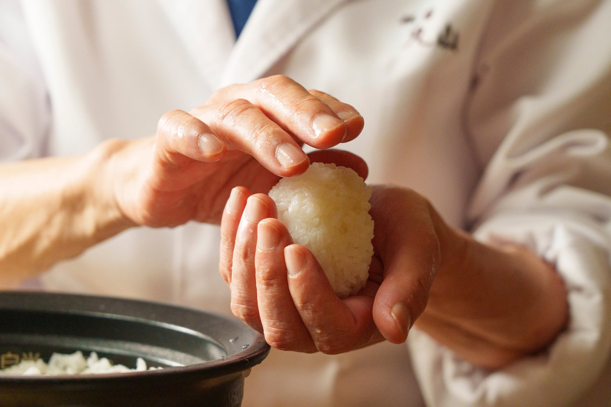 土鍋ごはんにこだわる「祇園丸山」が選び抜いた福井産いちほまれの今年の新米と、赤穂のにがりが入った天日塩を独自技術で配合しました。素材の味と作り方にこだわり抜いた塩むすびをご提供いたします。
