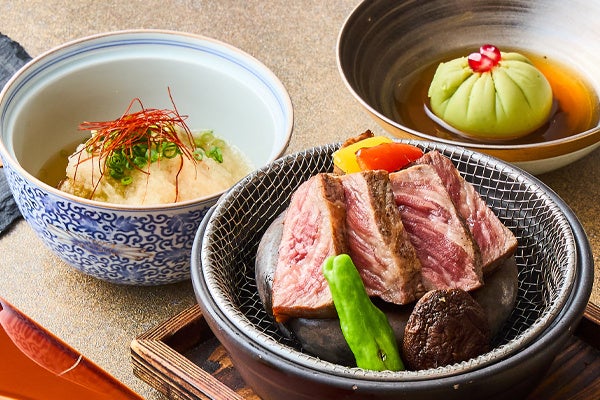 ゆったりとした時の流れを感じさせる落ち着きのある空間で、素材の持ち味をいかした繊細な味つけ、季節感あふれる彩りや盛り付けなど工夫を凝らした料理をお楽しみください。ペアプランでは、国産牛サーロインを当店名物の熱々の石でお好みの加減に焼き、ご堪能いただけます。
