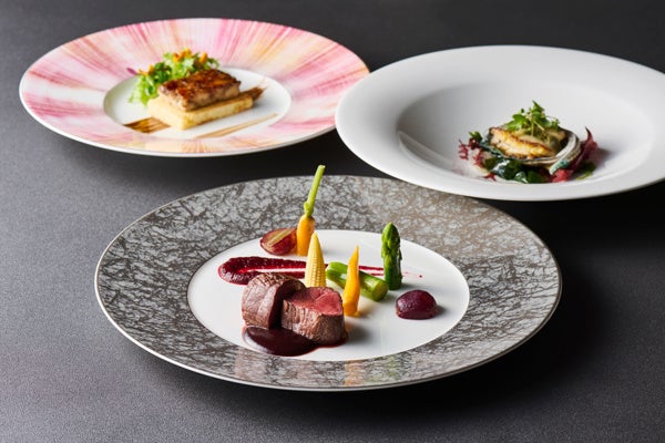 本格フランス料理をベースに素材の風味を引き立てるイタリア料理も加わり、魅力ある伊仏料理をご用意いたします。窓外に広がる景色を一望することができる店内でお楽しみいただけるペアプランは、魚料理も肉料理も、旬の食材を使ったその時季ならではのディナーコースです。