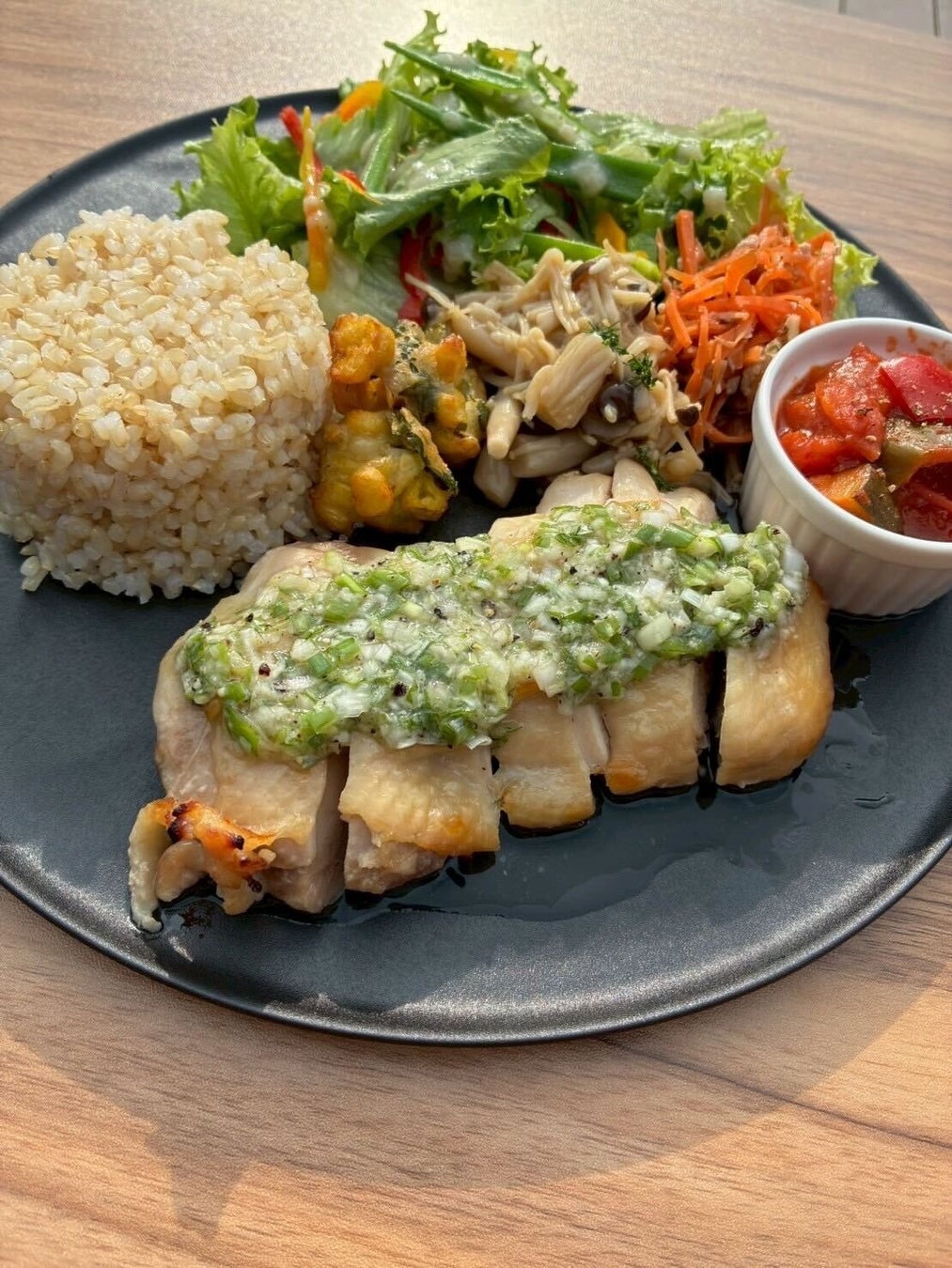 そんな玄米を主役にしたワンプレートには、旬の規格外野菜を活かした副菜を添えて。見た目にも華やかで、腸から整う満足感を味わえます。