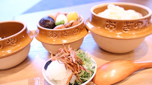 『荻野屋 回 -kai-』では、「峠の釜めし」の具材を使ったユニークなメニューが登場します。釜めしそのものも、うどんとの相性を考えて工夫が施されています。