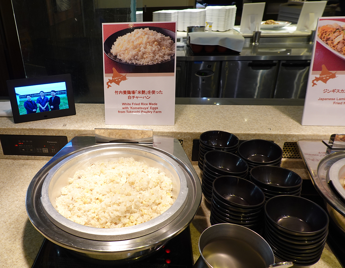 また、中華のコーナーには「竹内養鶏場「米艶」を使った白チャーハン」という、見た目にも珍しい一皿も。