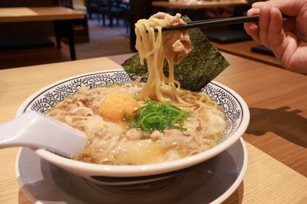 注文ごとに手鍋で豚肉と炊き込まれるスープは、3種類の醤油をブレンドした「熟成醤油がえし」によって深みとコクを増しています。コシのある多加水麺、そして和のアクセントである柚子こしょうおろしや青ネギが加わり、その全ての調和が取れた一杯は、まさに「丸源ラーメンにしかないこだわりの逸品」です。
