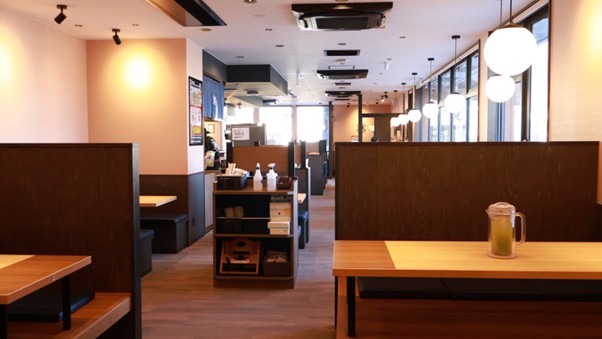 『丸源ラーメン 甲府和戸通り店』は、カウンター席、テーブル席に加え、お座敷席も完備した広々とした店内設計で、リラックスして食事が楽しめます。33台分の駐車場も用意されているため、車でのアクセスも便利です。