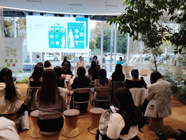 参加者を対象とした体験ワークショップでは、スポイトタイプで使いやすく、「ベタつかず、重ねづけしてもすっと肌になじむ」「使ったあと肌がふっくらした」と、テクスチャーと使用感の良さに納得の声が多数上がりました。メイクの上から使える実用性も、高評価のポイントです。