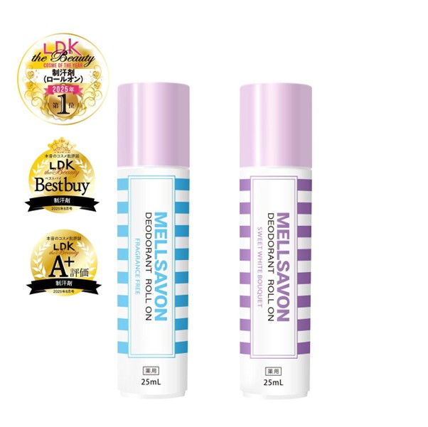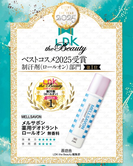 本音のコスメ批評誌『LDK the Beauty』2025年ベストコスメAwardにて、最高ランクの「Best」を受賞した「MELLSAVON(メルサボン)薬用デオドラントロールオン」。