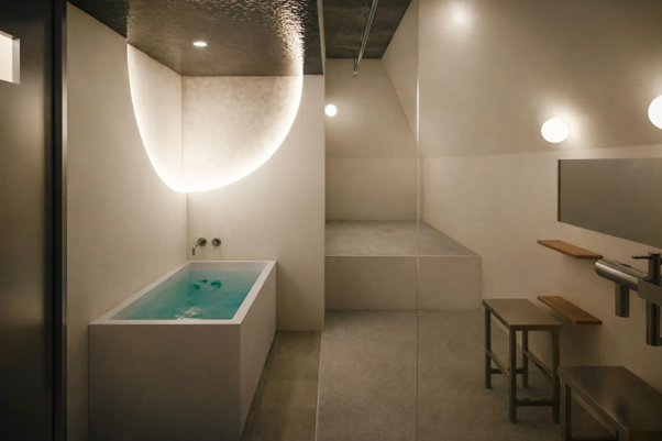 - 没入感の維持: 蒸気で温まった直後に移動することなく冷水を浴びる動線は、深いリフレッシュを誘引するだけでなく、自身の内面と向き合う「静寂」を担保しています。