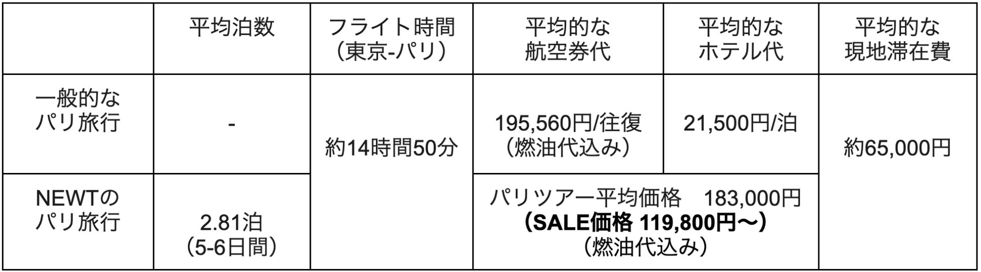 世界的な円安や物価高により海外旅行に逆風が吹いている今、フランス・パリへの旅行にはどれくらいの費用を見込めばよいのでしょうか?2024年7月16日現在の為替レートを元に、一般的なパリ旅行にかかる費用とNEWTで予約した場合の費用を比べてみました。
