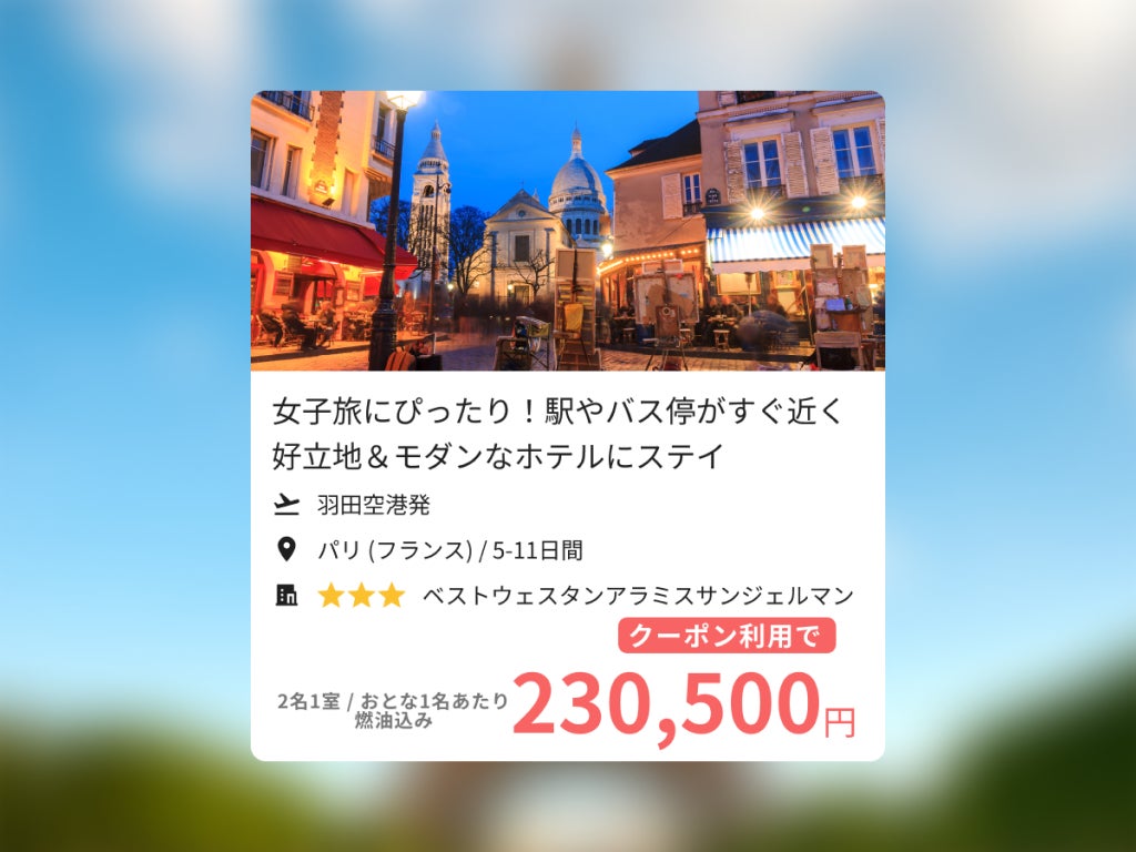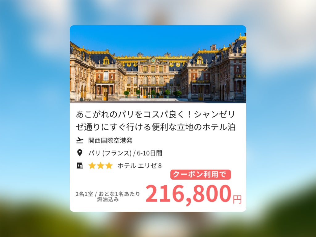 ◾️フランス・パリに行きたくなっちゃった皆さまへ!50,000円OFFクーポン緊急配布