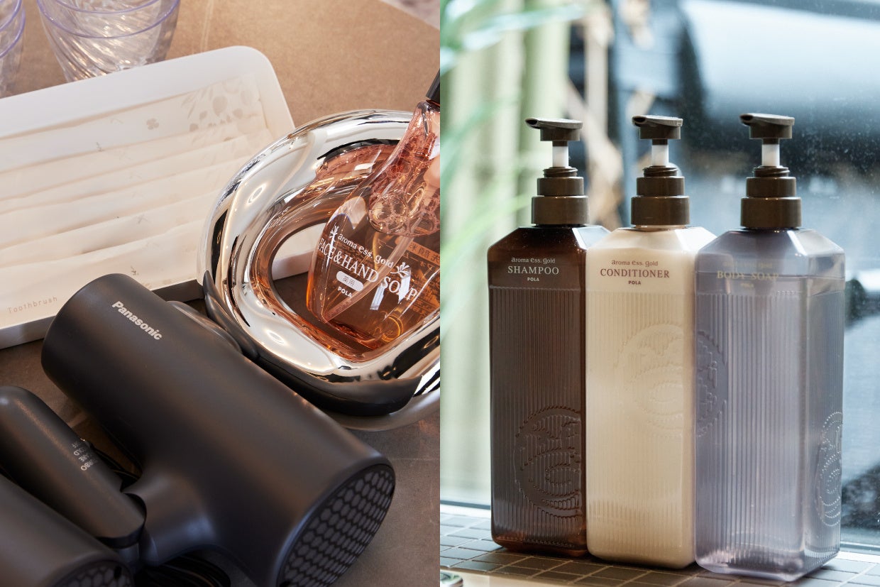 アメニティは女性の目線でセレクト。ドライヤーはパナソニックのイオニティを採用しています。