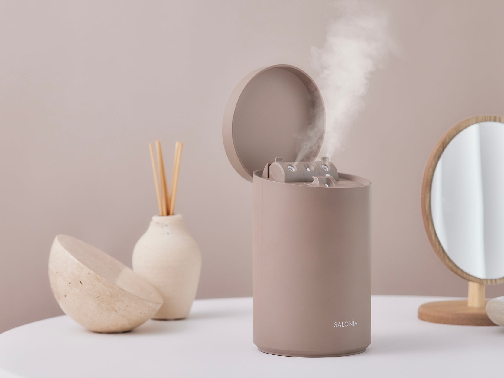 SALONIA「化粧水ミスト機能付きフェイススチーマー」に新色<ベージュ>が登場 毛穴より小さなミストで肌のうるおいが約200%にアップ*うるおいやハリ感を与え、毛穴が目立ちにくい透明感**のある肌へ