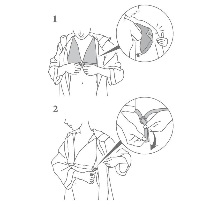 内側には、入浴後に染み出しやすい母乳をカバーするバストバンドが。フックを留め、サイドのゴムを引くだけでサイズ調整が自在でしっかりフィットします。ミルク育児の方や卒乳後にはフラットなバストバンドとして使え、さまざまなシーンで長く活躍できるロングユースデザインです。
