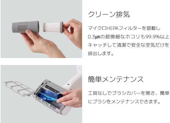 使い捨てフィルターを採用し、手を汚さずゴミ捨てが可能になりました。