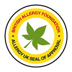 英国アレルギー協会の『認証マーク』が付いている製品は、アレルギーや喘息に悩む方のために、アレルゲンを効果的に削減・除去できることが科学的に証明されているか、またはアレルゲンや化学物質の含有量が有意に少ないと認められていることを示します。