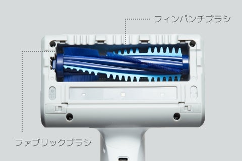 細かなゴミをかき出すファブリックブラシと、79,200回/分 高速でたたくフィンパンチブラシでダニのフンや死骸を含むハウスダストを繊維の奥からたたき出します。