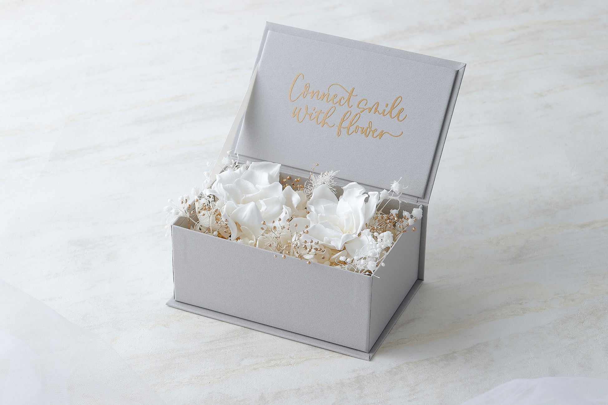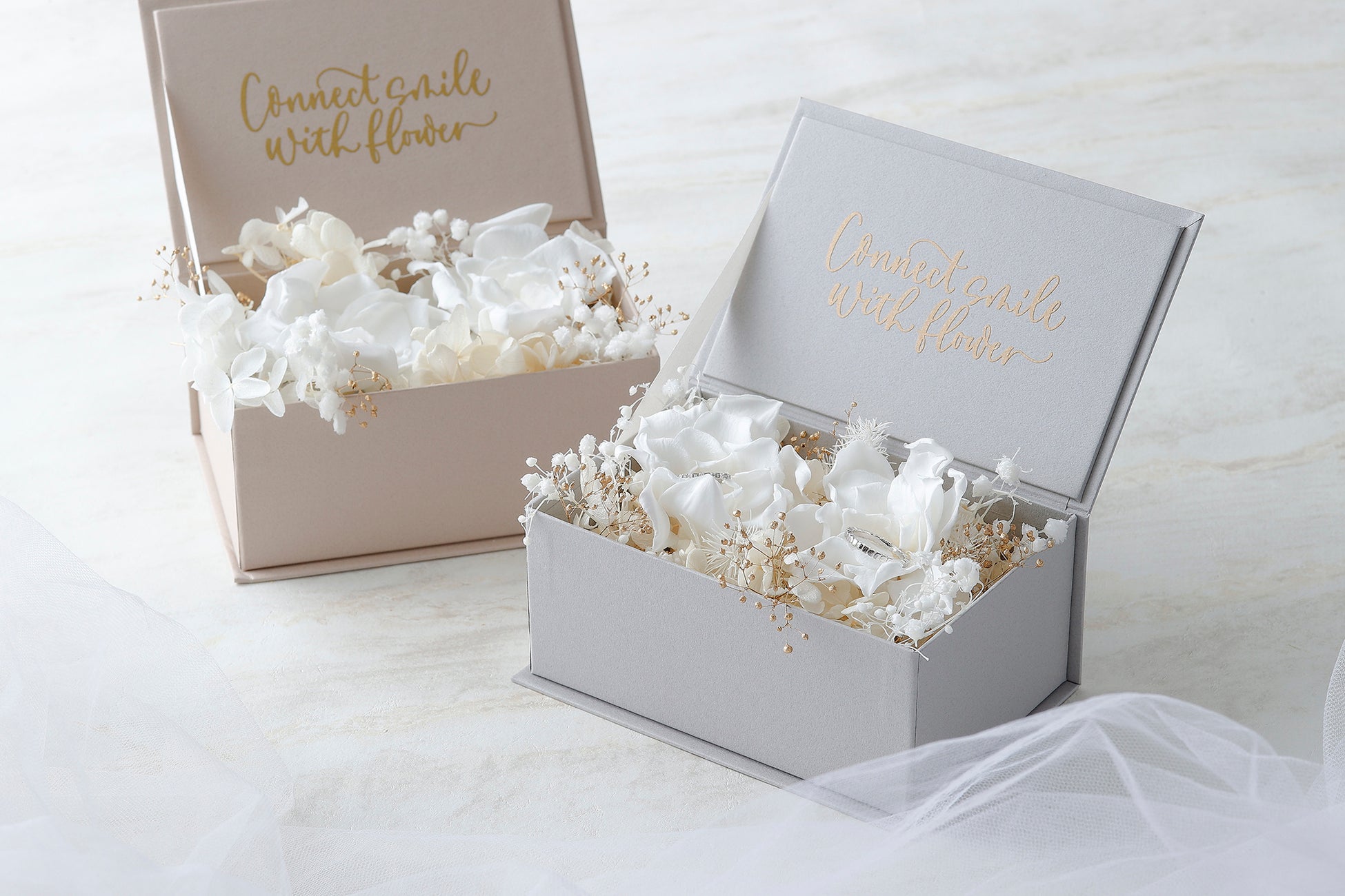 ※リングピローのボックスデザインはグレージュ、またはペールグレーの2色よりお選びいただけます