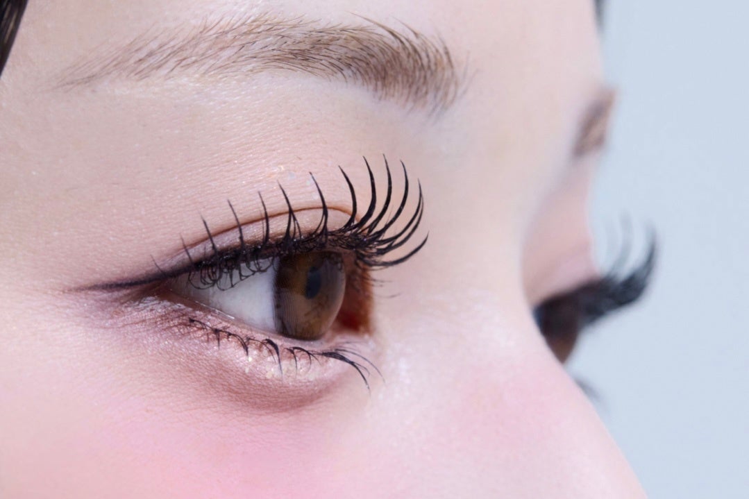 細く長く伸びる均等な束間まつげに