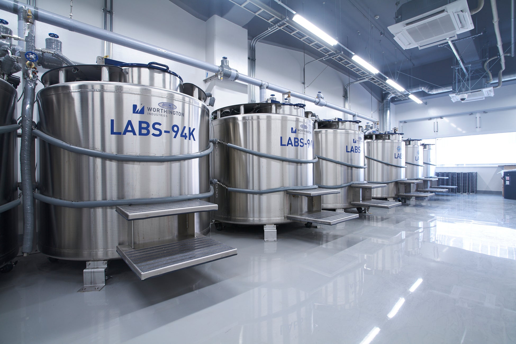 ご出産時、さい帯・さい帯血は医療従事者によって採取されます。その後、専門スタッフが48時間以内に細胞処理センターへ届け、液体窒素タンク(約マイナス190℃)の超低温で保管されます。