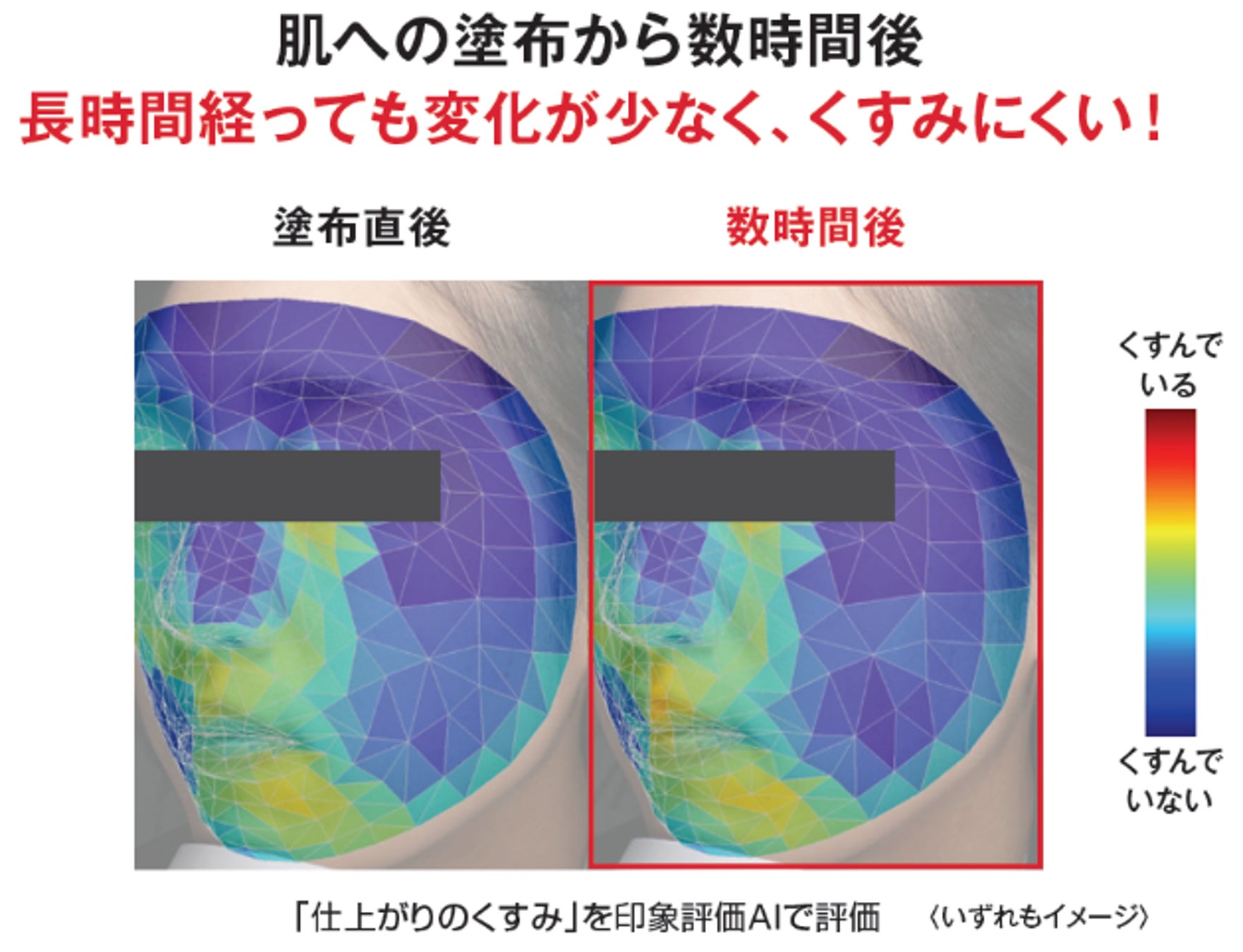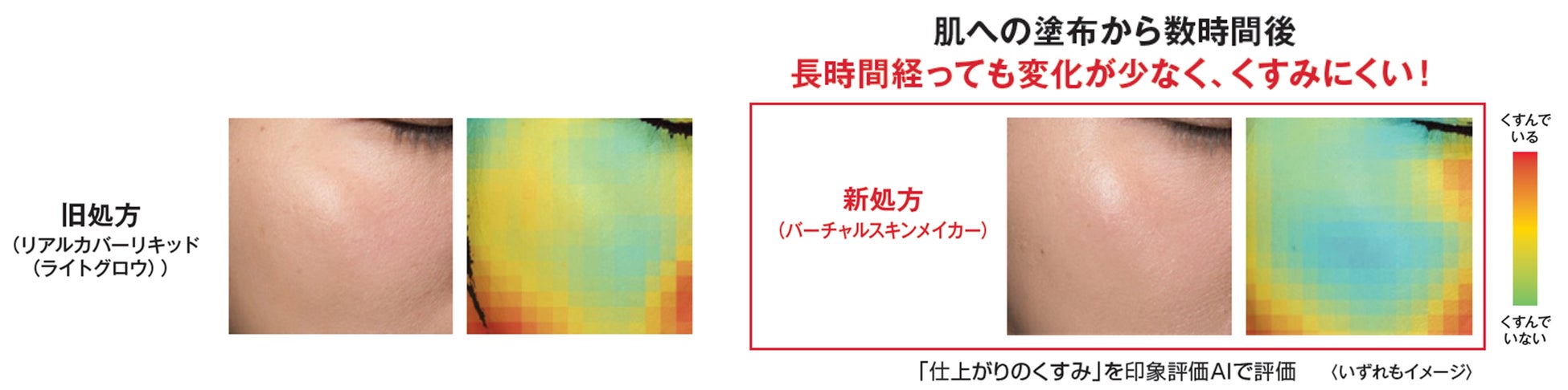 弾力のあるハイカバー膜と濁りのない発色で、肌になじみ一体化 「バーチャルスキンフィルム処方」