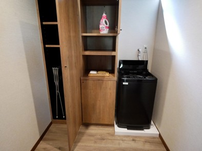 バスルームにはバスタブもあり、洗濯機は汗をかいた衣類もすぐに洗うことができて便利。洗剤も棚の中にありました。至れり尽くせりです。パジャマにもなる部屋着も受付でレンタルできているので、着てきた服を洗って翌日着て帰れたら、荷物も少なくすんで楽!なるべく荷物は減らしたいですよね。