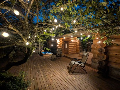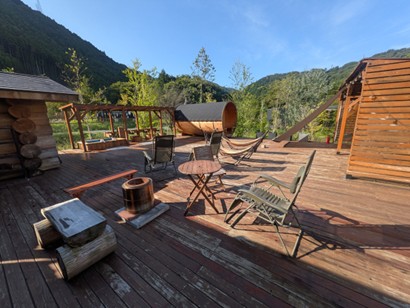 チェックインして少し休んだら、さっそくプレミアムコテージ〈欅(けやき)〉のプライベートサウナ「TAIPO」へ!