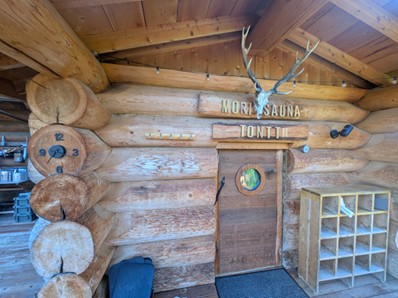 サウナ・コテージ受付の横にあるのは、宿泊者以外も利用できる日帰りパブリックサウナ「TONTTU」。薪ストーブのログサウナと人気のバレルサウナ、両方を楽しむことができます。