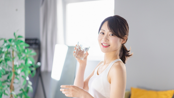 常温の水を飲むと、腸が目覚めやすくなりますよ。