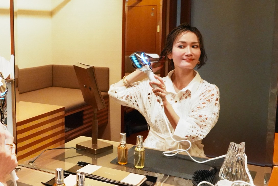 「移動や打ち合わせで髪や肌のケアが後回しになることが多いんです。でもReFaルームならなら同じ仕上がりにととのえられるので、何度泊まっても安心できます」と笹野さん。