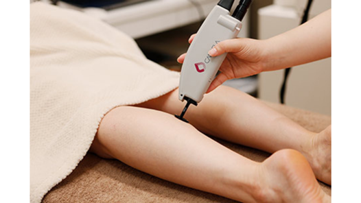 レッグベインの治療には、いくつかの方法がありますが、細かい「網目状・クモの巣状」の血管に特化しているのが体外照射のロングパルスYAGレーザーです。