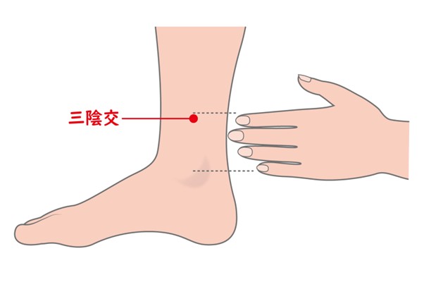 休息感を高める代表的なツボは「三陰交(さんいんこう)」といい、内くるぶしから指4本分ほど上の、すねの内側に位置します。
