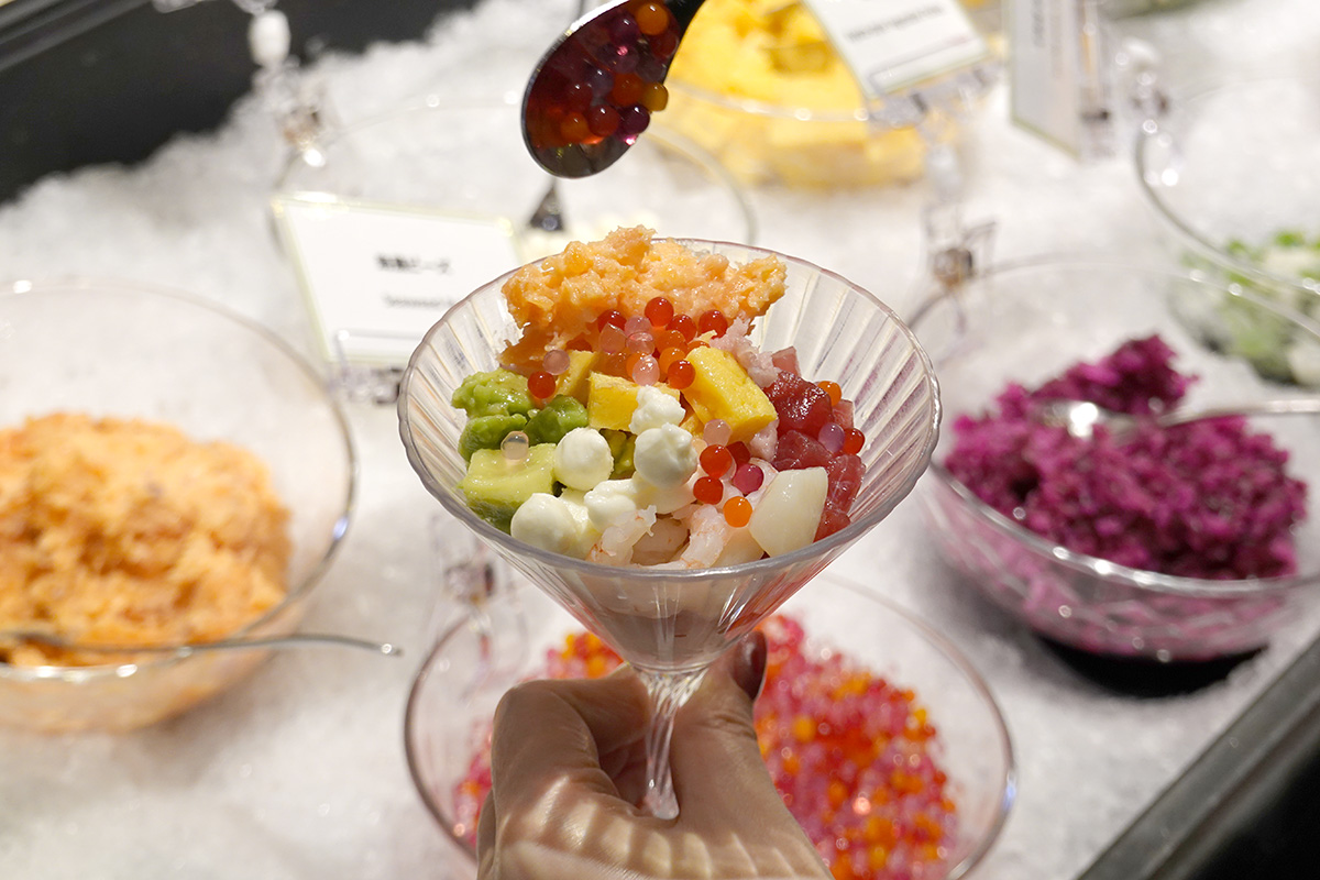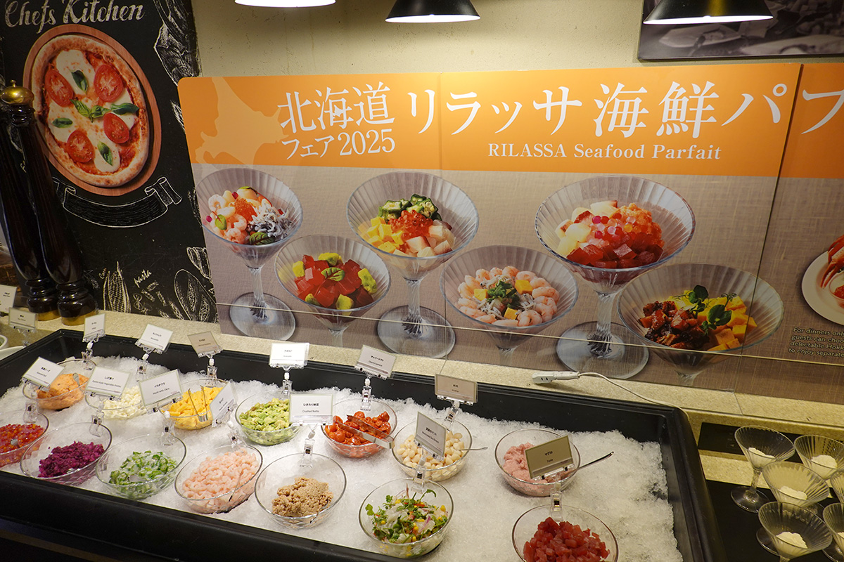 今回もやはり目玉になっていたのが、自分好みに盛り付けられる「リラッサ海鮮パフェ」。