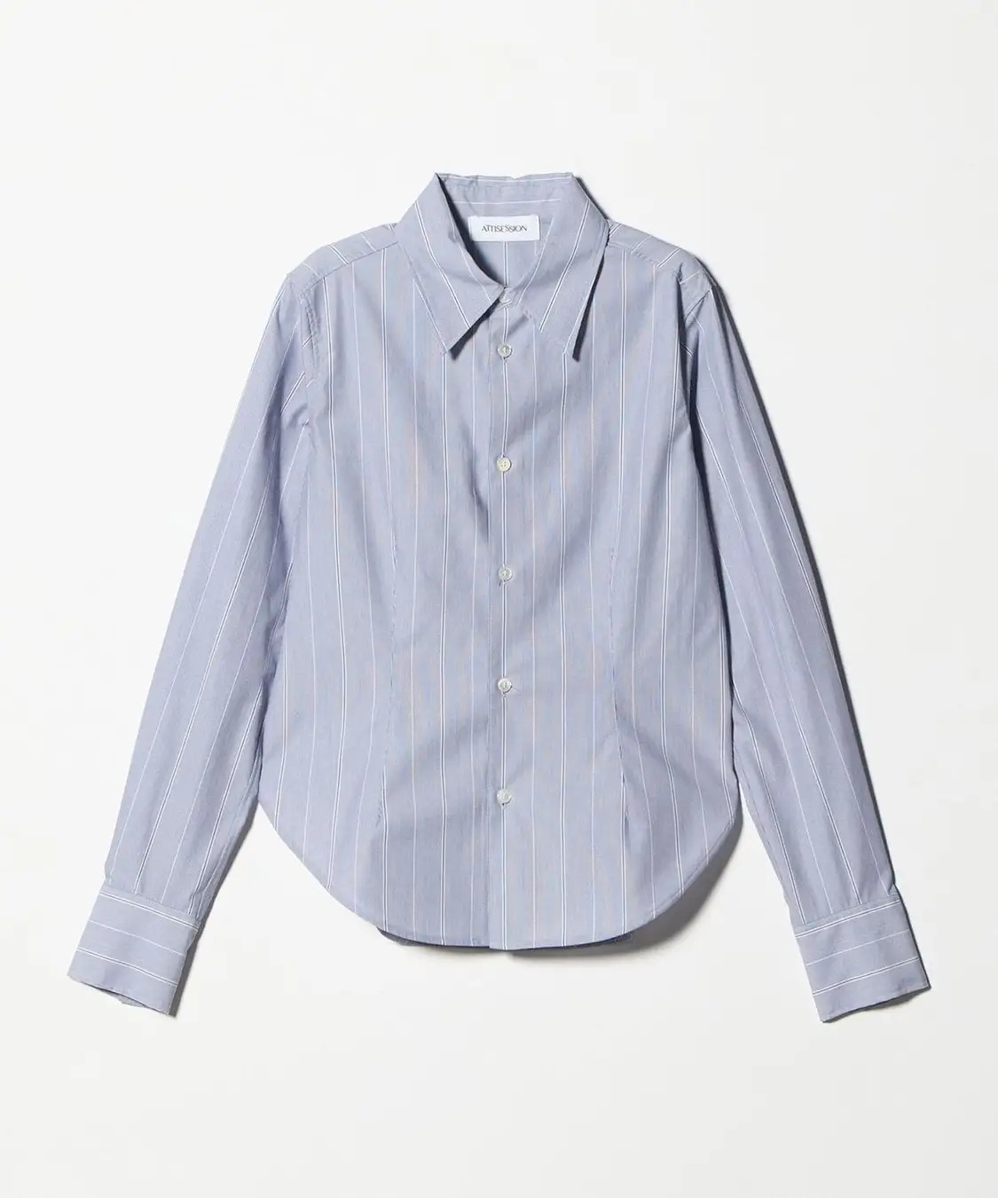 カービーなシルエットとミニマムなサイジングが<ATTISESSION>らしいストライプ柄シャツ。シェイプさせたウエストデザインが魅力的なスリムフィットのストライプシャツは、コットン100%で、表面感のきれいなストライプ素材を使用。 ロングポイントの襟元&袖口の開き部分を長めに仕上げて、さりげないアクセントを添えたアイテムです。 一枚着ではもちろん、羽織りとしても活躍し、汎用性がありロングシーズン着用が叶う一着。