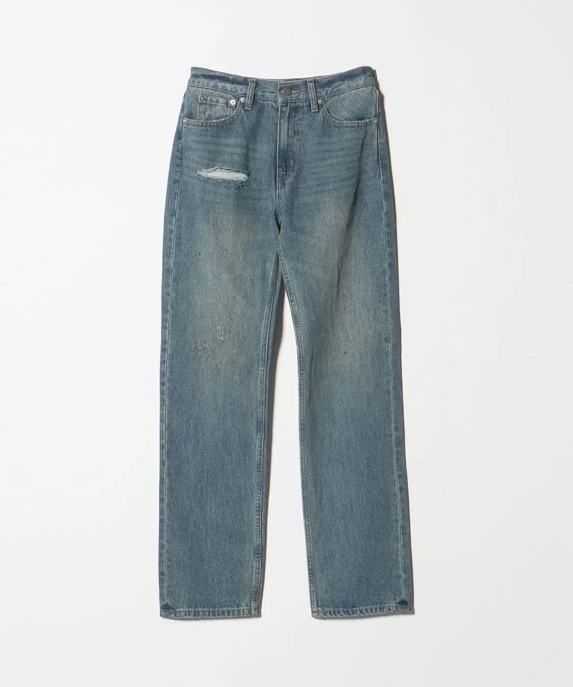 セミワイドですっきりとしたストレートシルエットのデニムパンツは、コットンを使用した古着のような風合いが特徴。さりげなく施されたダメージと、ヴィンテージライクな雰囲気が今の気分にマッチするデザインです。 今シーズンにワードローブの定番として、新たに揃えておきたい一着。