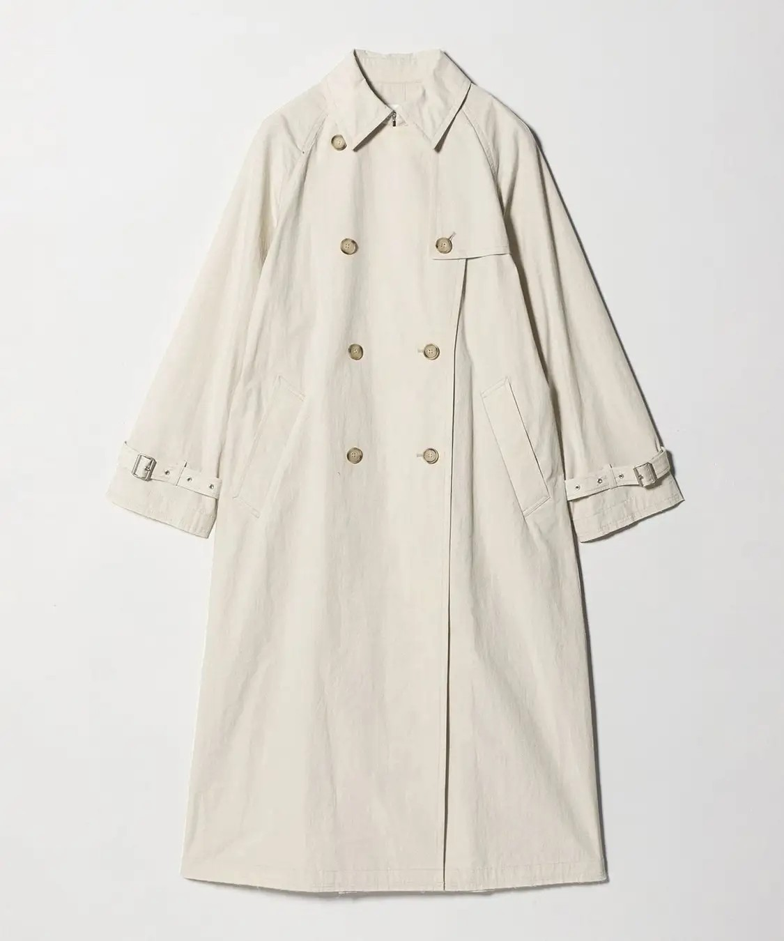 シンプルながら存在感を放つ、主役級のロング丈トレンチコート。 袖口や裾にあしらった裁ち切りディテールが、ラフなニュアンス感とエッジを添える一着です。 ウエストベルトは内側にすっきりと収められる仕様で、その日のスタイルに応じてアレンジが可能。 クリーンな印象のオフホワイトと、凛としたムードを引き立てるブラックの2色をご用意しました。