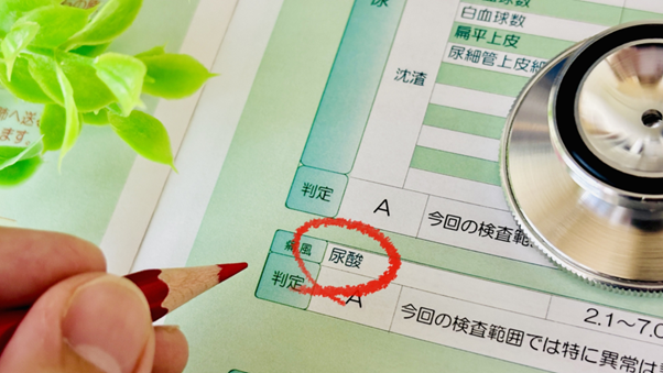 尿酸は尿によって体外に排出されますが、量が多いと排出しきれず、尿酸値が高くなり痛風などのリスクが高まります。