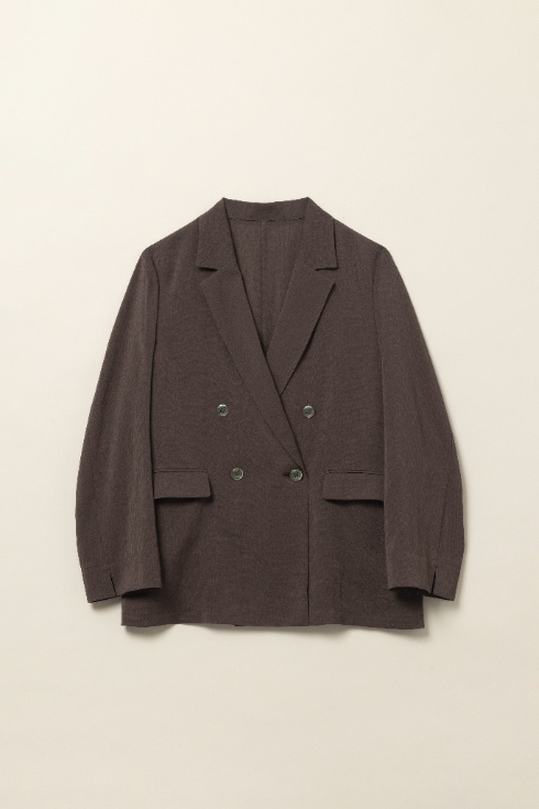 程よい光沢感と、透け感のあるシアー生地のダブルジャケット。 羽織るとその軽やかさに驚くはず。 暑い時期にも快適な着心地です。
