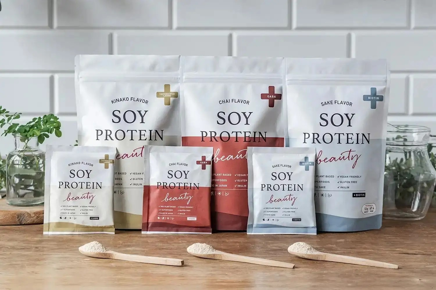 「ソイプロビューティ プラス」は、女性の美と健康を考えて開発された、100%植物性、ヴィーガンフレンドリーの大豆プロテインです。Japan Made Beauty Award 2021 優秀賞をはじめ、これまでにさまざまな賞を受賞しています。成分設計にこだわるのはもちろん、日々取り入れやすいよう、溶けやすさとおいしさも追求。