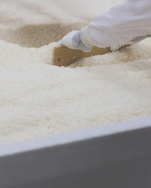 酒粕を特殊な技術で乾燥パウダー化。お湯に溶かした瞬間、バスタブ一面が真っ白に染まり、酒蔵にいるような甘く芳醇な香りが広がります。酒蔵の恵みをそのままに。酒粕由来の保湿成分が肌を優しく包み込み、しっとりとした健やかな肌へと整えます。