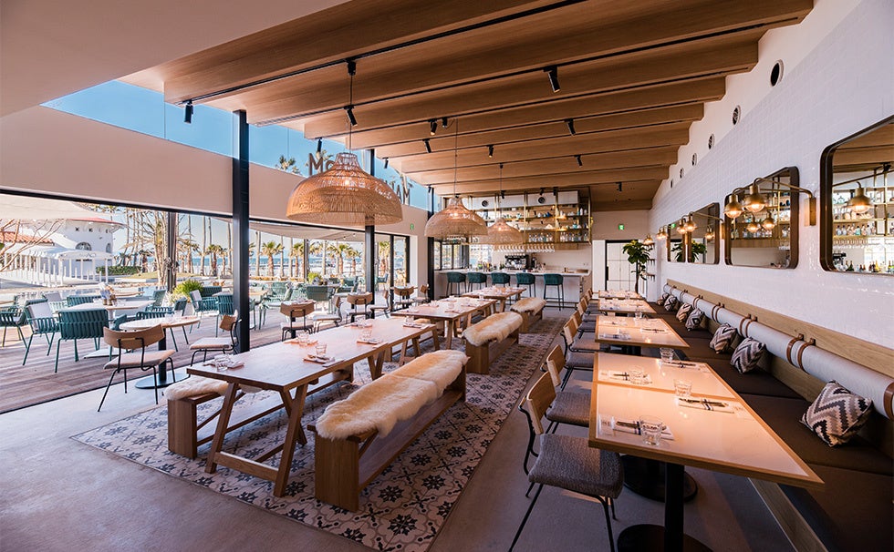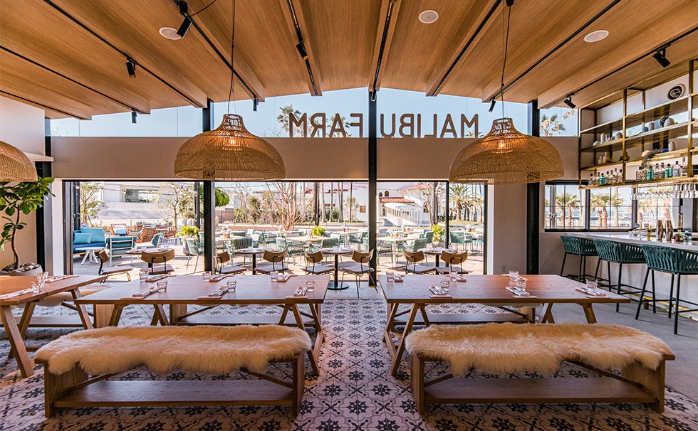『マリブファーム 逗子マリーナ』では、現地の人気メニューのほか、地元湘南の新鮮野菜や相模湾の魚介類を使用した日本限定メニューもご用意しています。全開可能なサッシによりテラス席と内部が一体となる設えで、約50席の屋内席の他、マリーナの海から繋がるような大きな水盤が広がる約80席のテラスには、三方を水に包まれたウォーターテラス席や暖炉を囲むファイヤーテラス席など、シチュエーションに応じてお使いいただけます。豊富なテラス席を有するため、ペット同伴でのお食事に最適なレストランです。