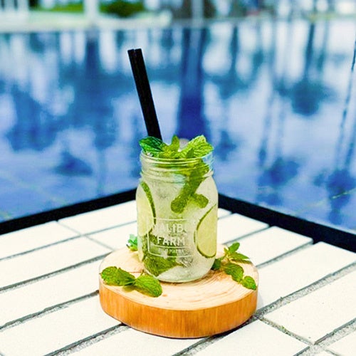 マリブファームで育てたフレッシュなスペアミントをふんだんに使用した、自家製ミントのモヒート。すっきりとした香りは暑い夏にぴったりの清涼感あふれるドリンクです。