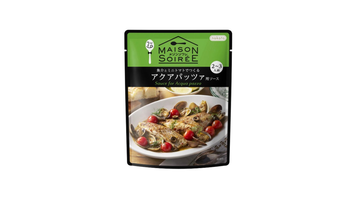 メゾンソワレシリーズとは、ご家庭で本格的なメニューが楽しめるように作られたソースです。「アクアパッツァ ビーフストロガノフ フリカッセ」などの手間がかかるメニューも簡単に作れて、ご自宅でゆっくりと家族との会話を楽しんでいただくために開発されたシリーズです。