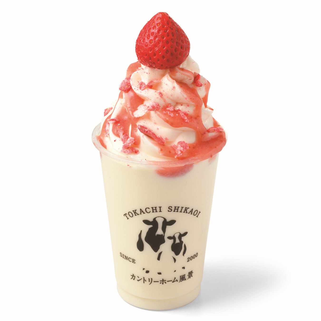 創業1963年、50年以上の歴史を持つ酪農専業農家「カントリーホーム風景」。自社牧場の低温殺菌牛乳とミルクソフトクリームに、北海道産のフリーズドライのイチゴパウダー・生のイチゴ・イチゴピューレをトッピングしました。滑らかでしっとりとした口当たりのソフトクリームと、苦手な方でも飲みやすいすっきりしたのど越しと自然な甘みの牛乳を合わせ仕上げました。