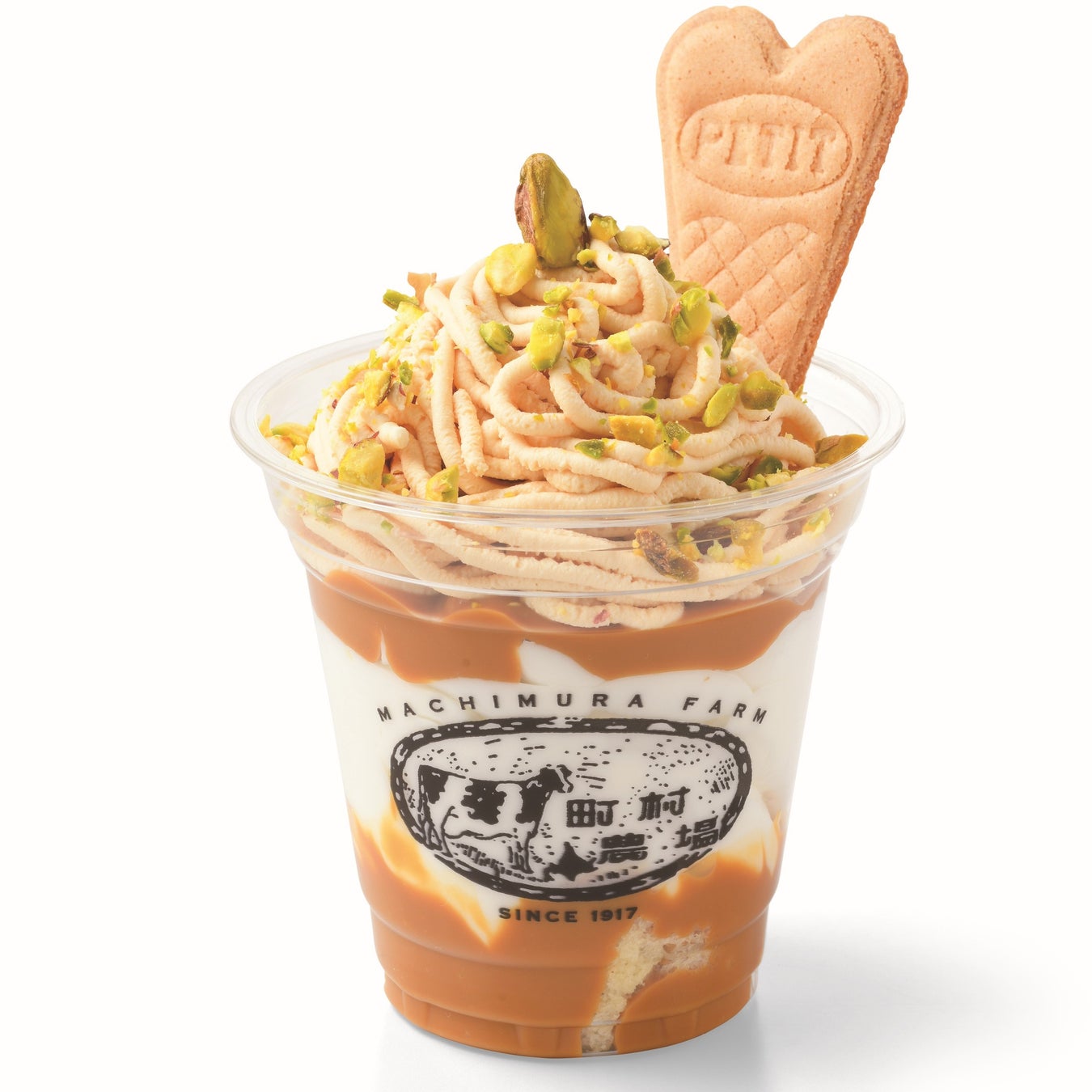 1917 年創業の老舗乳業メーカー。牧場直送のミルクを使用し、ミルク本来のあっさりとした味わいを楽しめるミルクソフトクリームの上に、ミルクジャム風味のマスカルポーネチーズのクリームを絞り、ピスタチオを合わせたサンデー。特選牛乳を丁寧に砂糖のみで煮詰め、ほんのりキャラメルの風味も香る自家製ミルクジャムとマスカルポーネチーズの相性抜群のサンデーです。