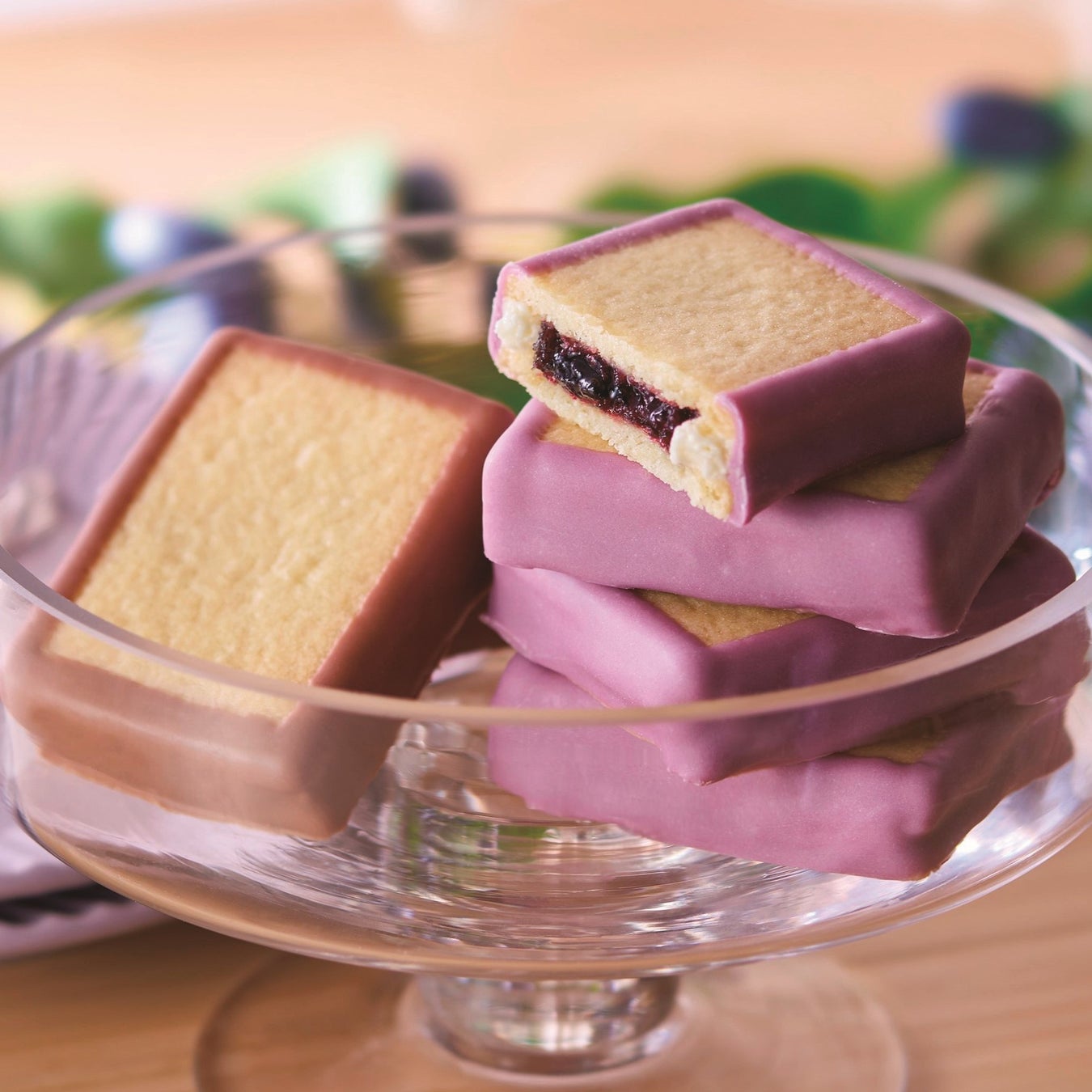 北海道の素材にこだわったスイーツを販売する1949年創業の「もりもと」のサブブランド「もりのヌーボー」。この夏に北海道で収穫したハスカップを使用した甘酸っぱいジャムをクッキーでサンド。会場にてチョコレートで縁取りし、実演で仕上げます。