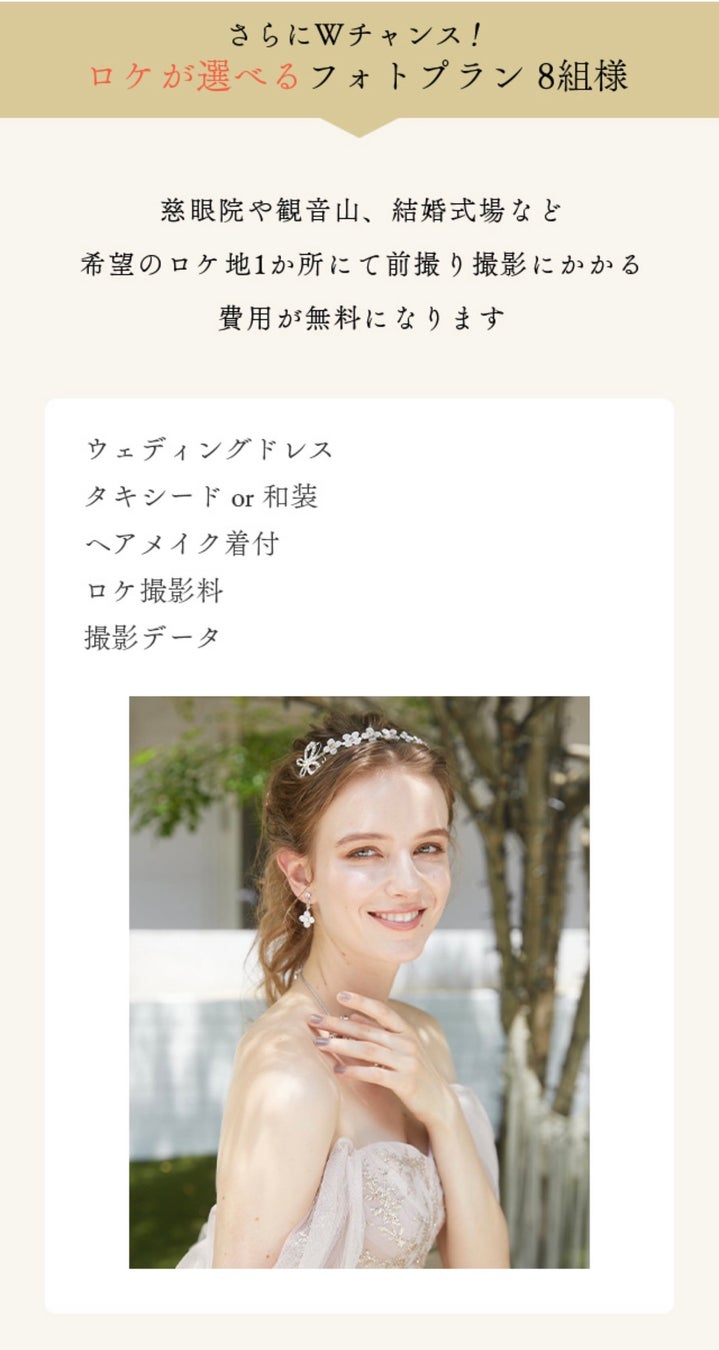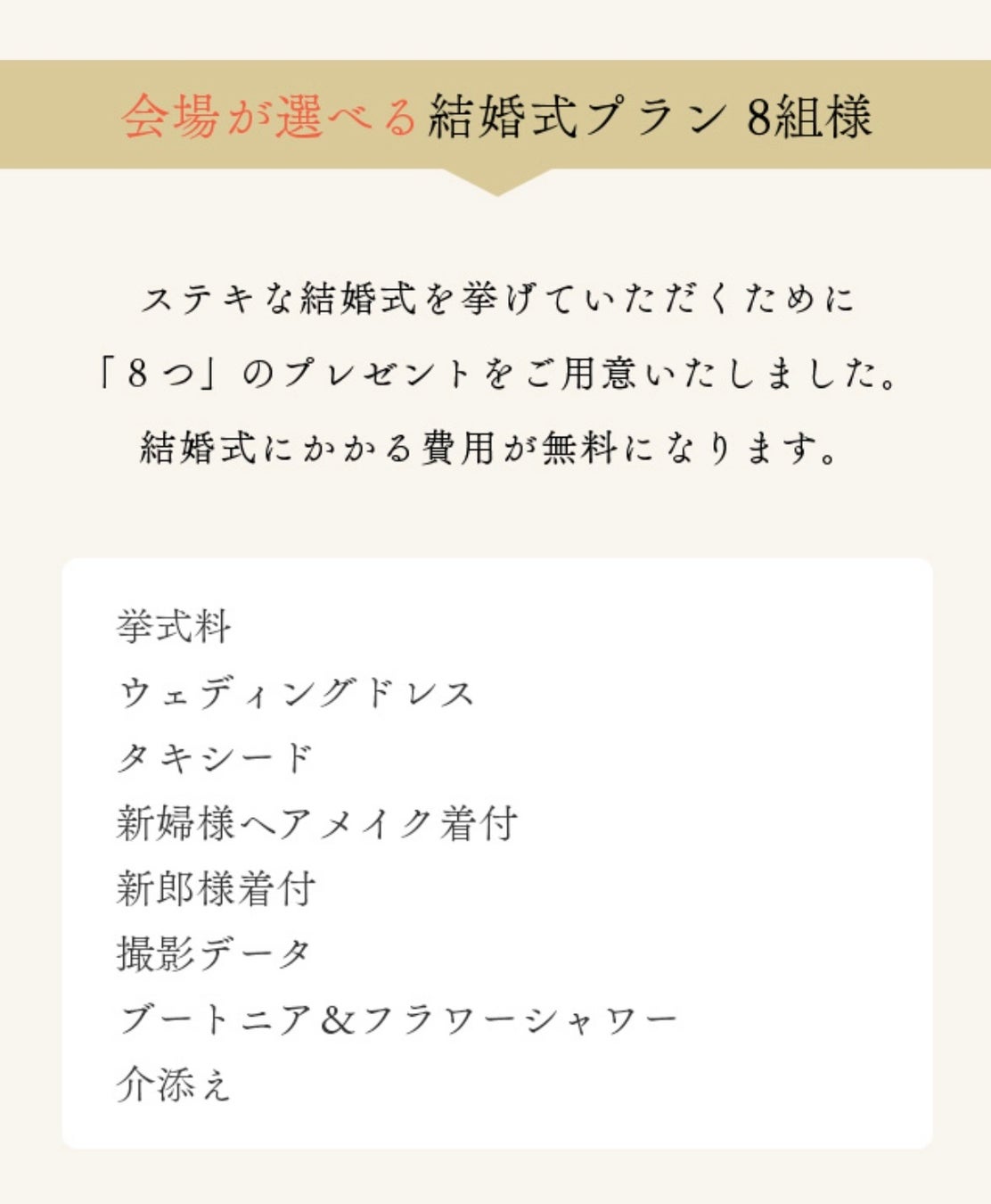 当選者:抽選で8組様に無料結婚式をプレゼント