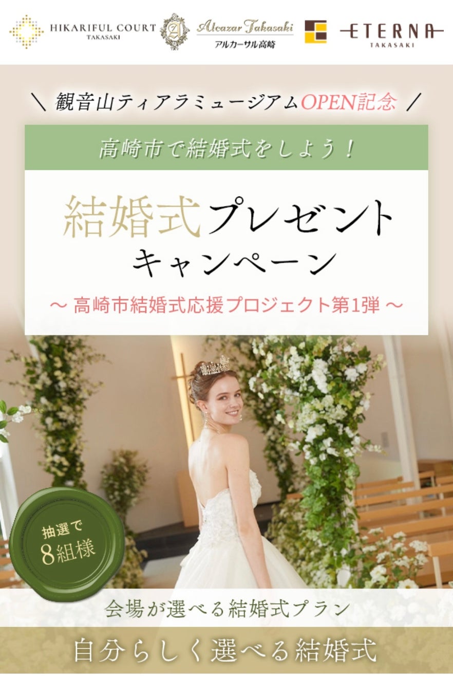 『観音山ティアラミュージアム』OPEN記念。高崎市で結婚式をしよう!結婚式プレゼントキャンペーン