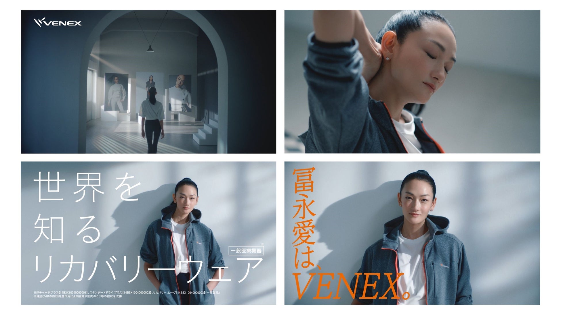 休養時専用の「リカバリーウェア」を開発、製造、販売する株式会社ベネクス(所在地:神奈川県厚木市、代表取締役:中村 太一、以下、当社)は、世界で活躍するモデル・冨永愛さんが出演する、当社初TVCM「冨永愛は、VENEX。」を、2024年11月1日(金)より関東・中京エリアにて放映開始します。