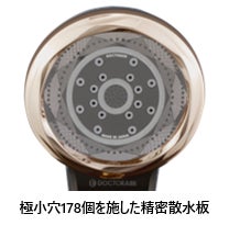 約0.3mmと極小の穴を178個施した精密散水板が高水圧と肌にあたりの滑らかなシルキータッチな水流を実現し、満足な使用感に。