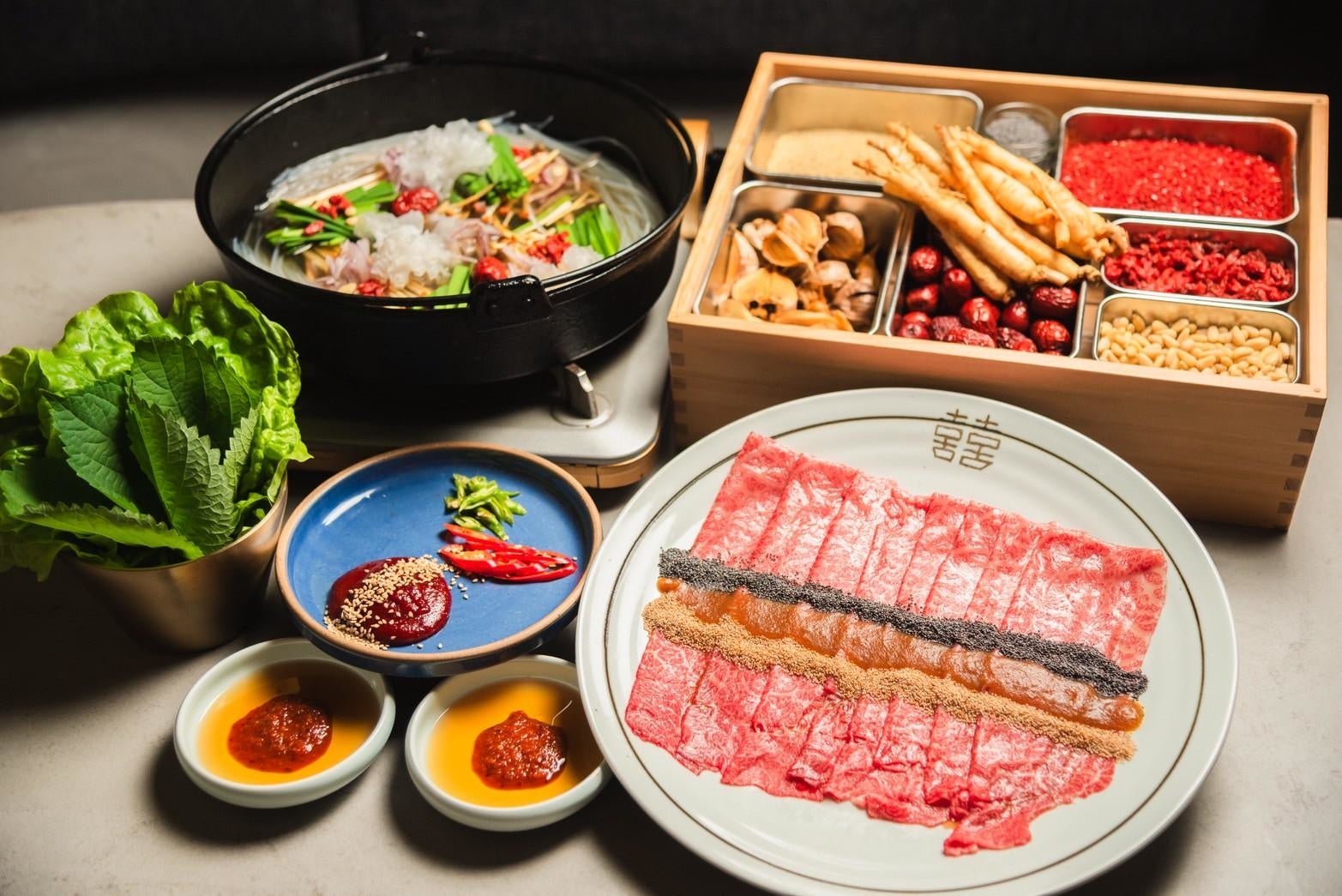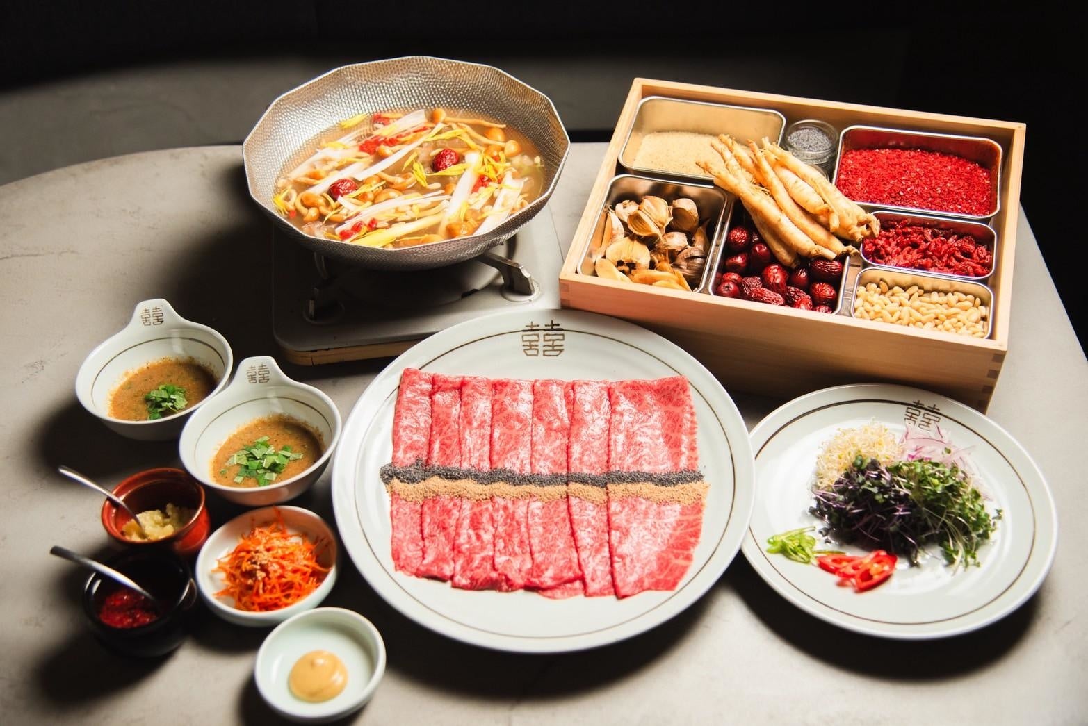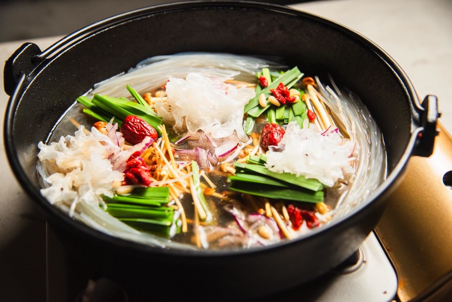 【 NORAN 】では、極上の黒毛和牛を薬膳が香る特製出汁でいただく “ 美容鍋 ” としてご提供。