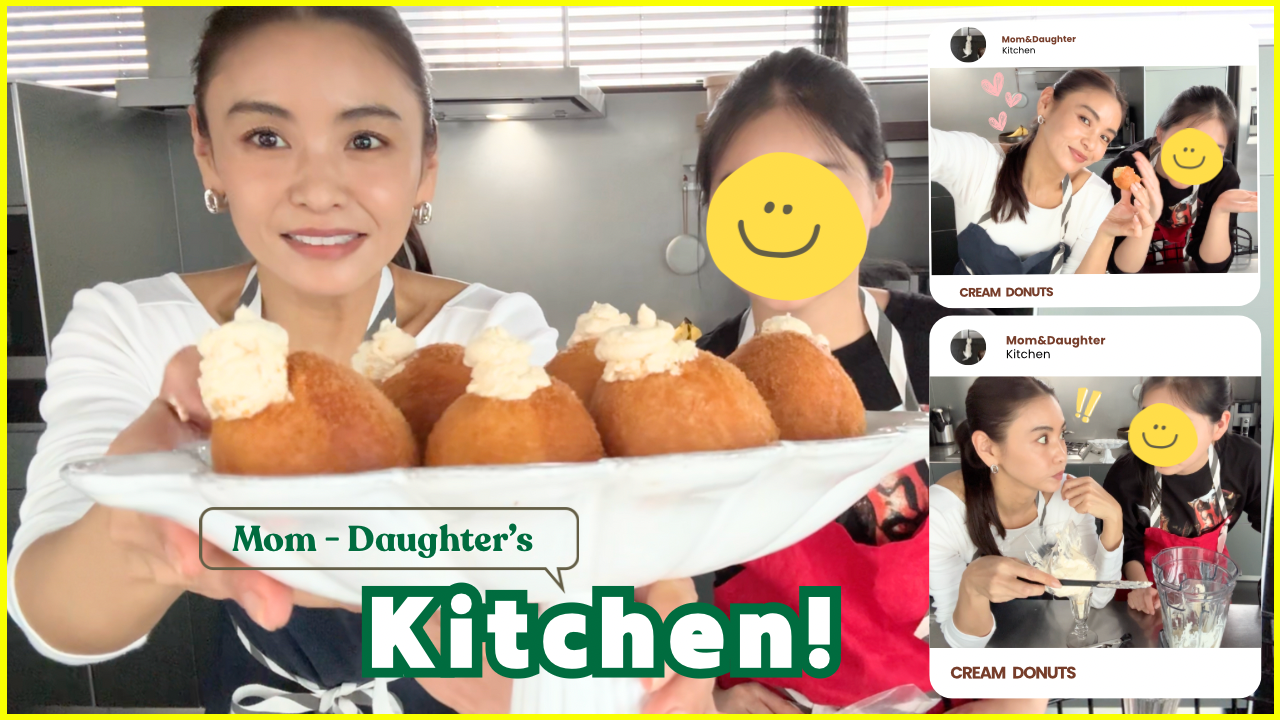 滝沢眞規子さんが親子で、バイタミックスを使って「ココナッツシュガークリームドーナツ」を作っています。